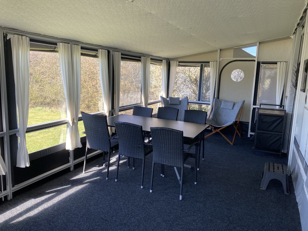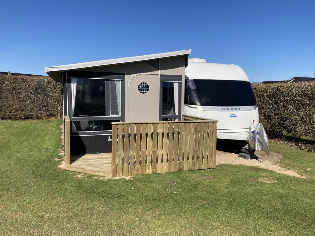 From 2025 it is possible to rent a Camper without a bathroom and toilet, but with a location very close to the service building. It is a Hobby 650 with a fixed Villa 750 awning. The Camper has 4 sleeping places and plenty of space in the awning for wonderful moments with the family.